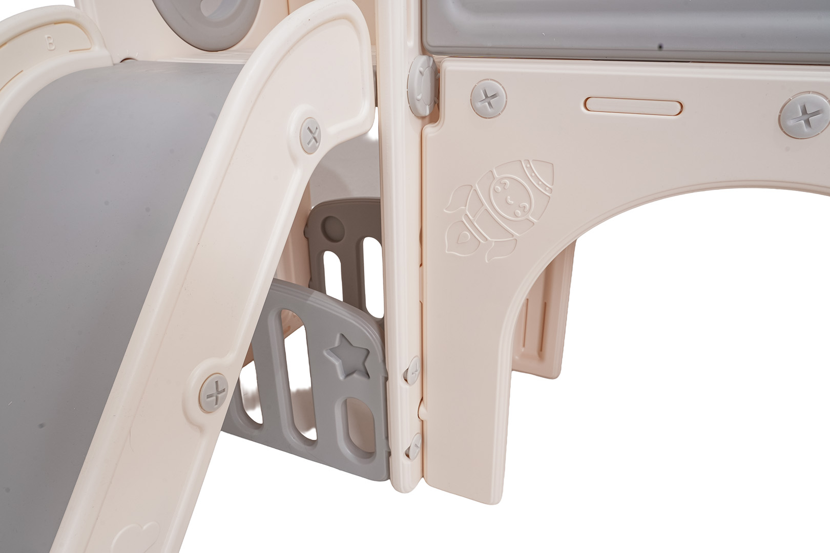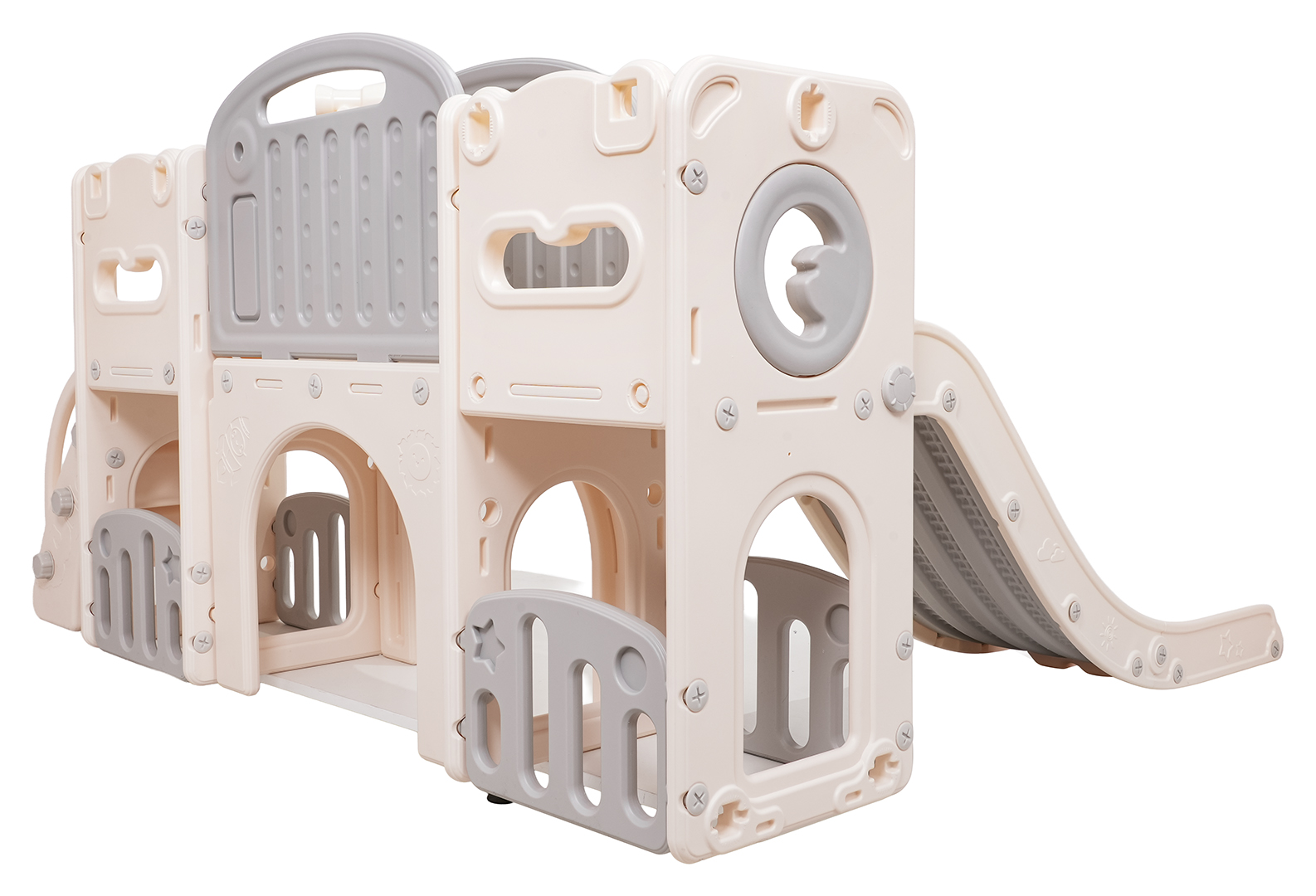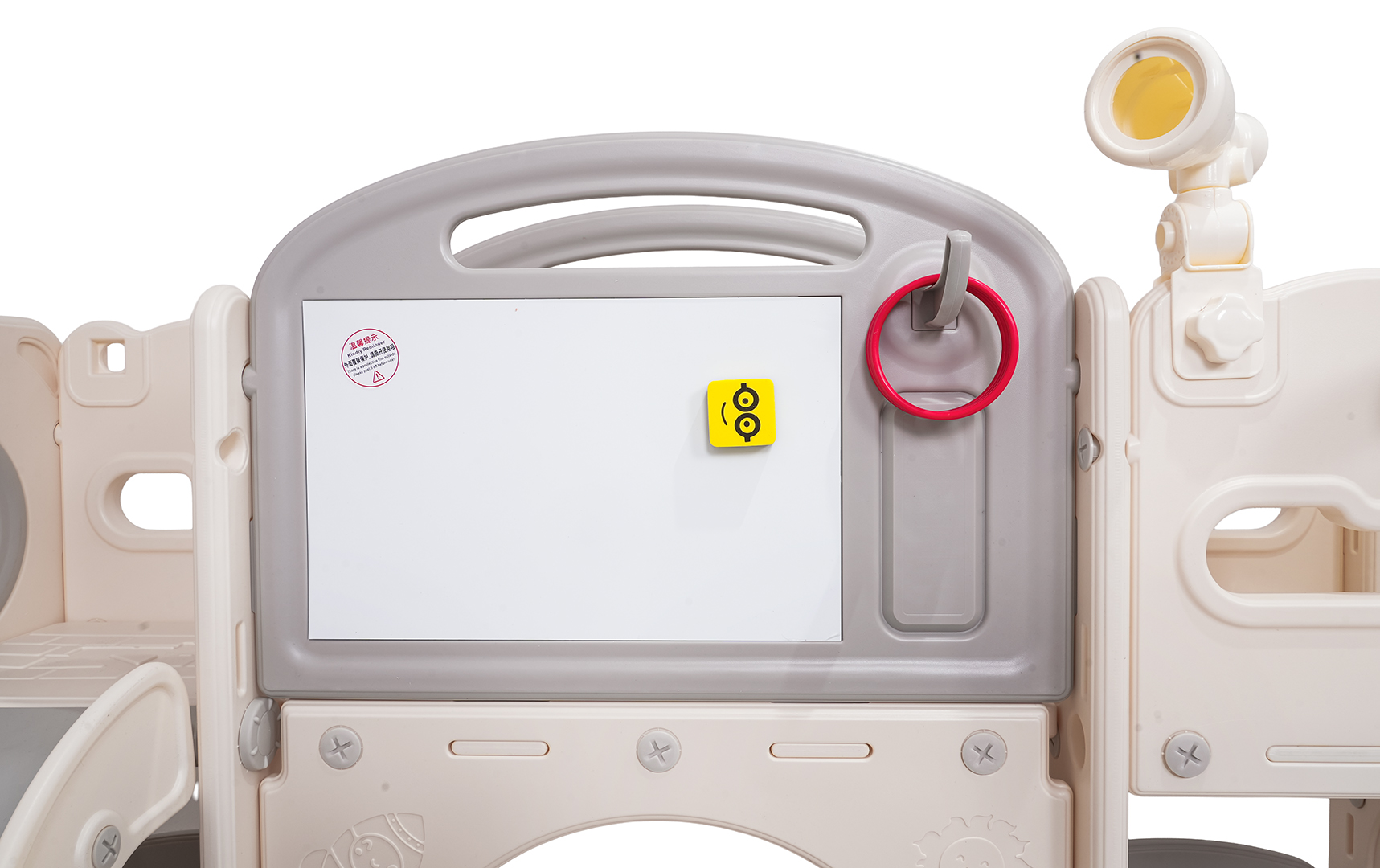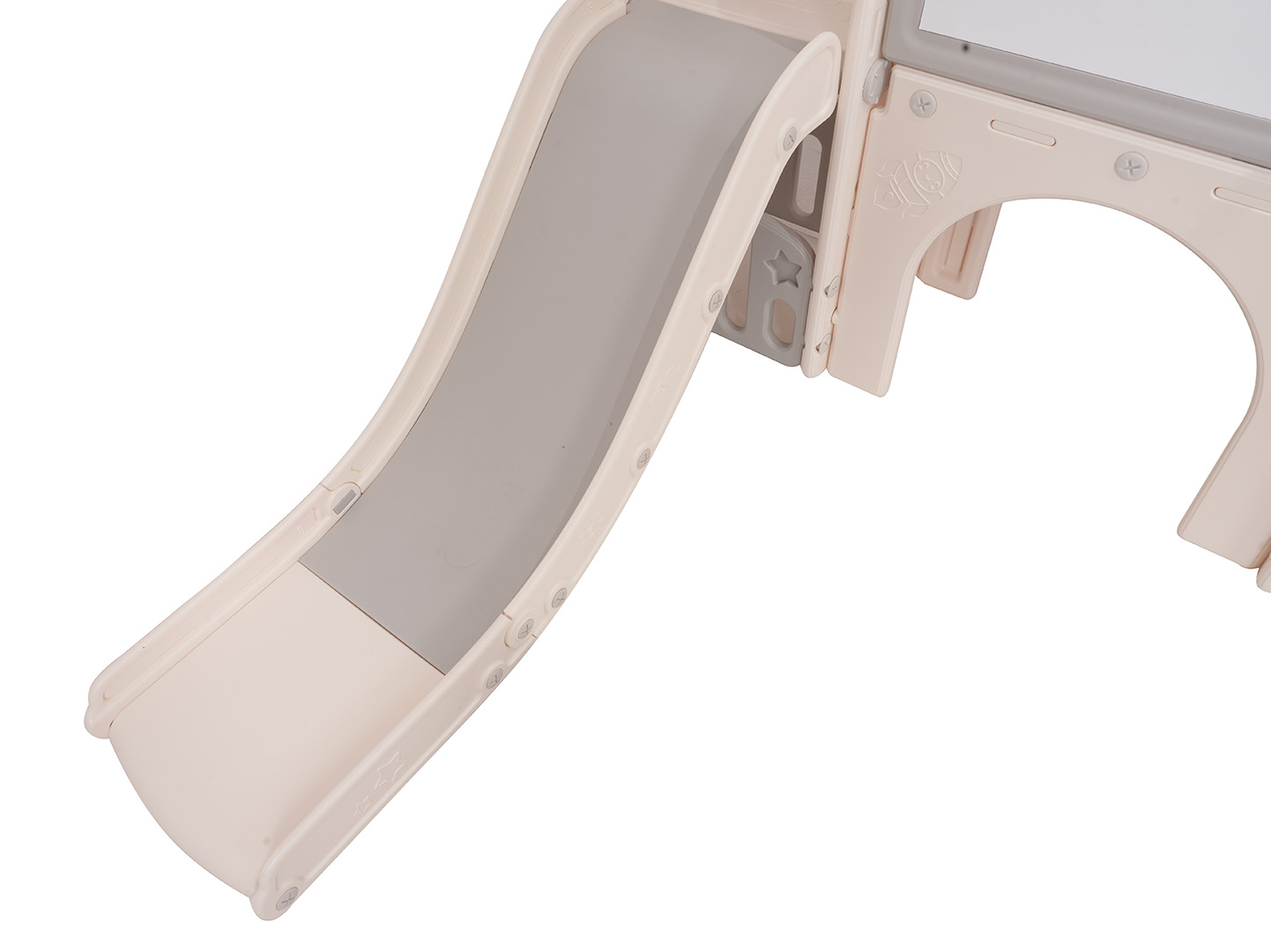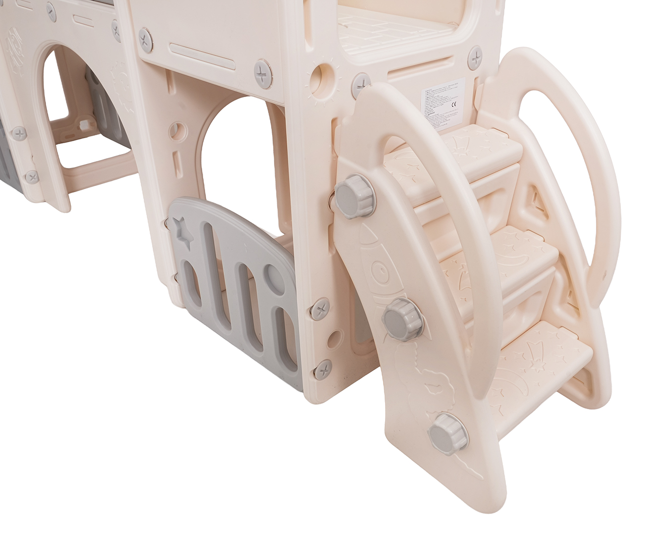 Ovaj 5-u-1 set uključuje tobogan, košarkašku loptu, ploču za crtanje, igru bacanja prstenova i gol, prikladan za djecu od 1 godine i više. Sve komponente izrađene su od visokokvalitetnog HDPE-a, koji je fleksibilniji i otporniji na mehanička oštećenja od drugih sličnih konstrukcija. Velike komponente olakšavaju sastavljanje. Set je idealan za unutarnju i vanjsku upotrebu.