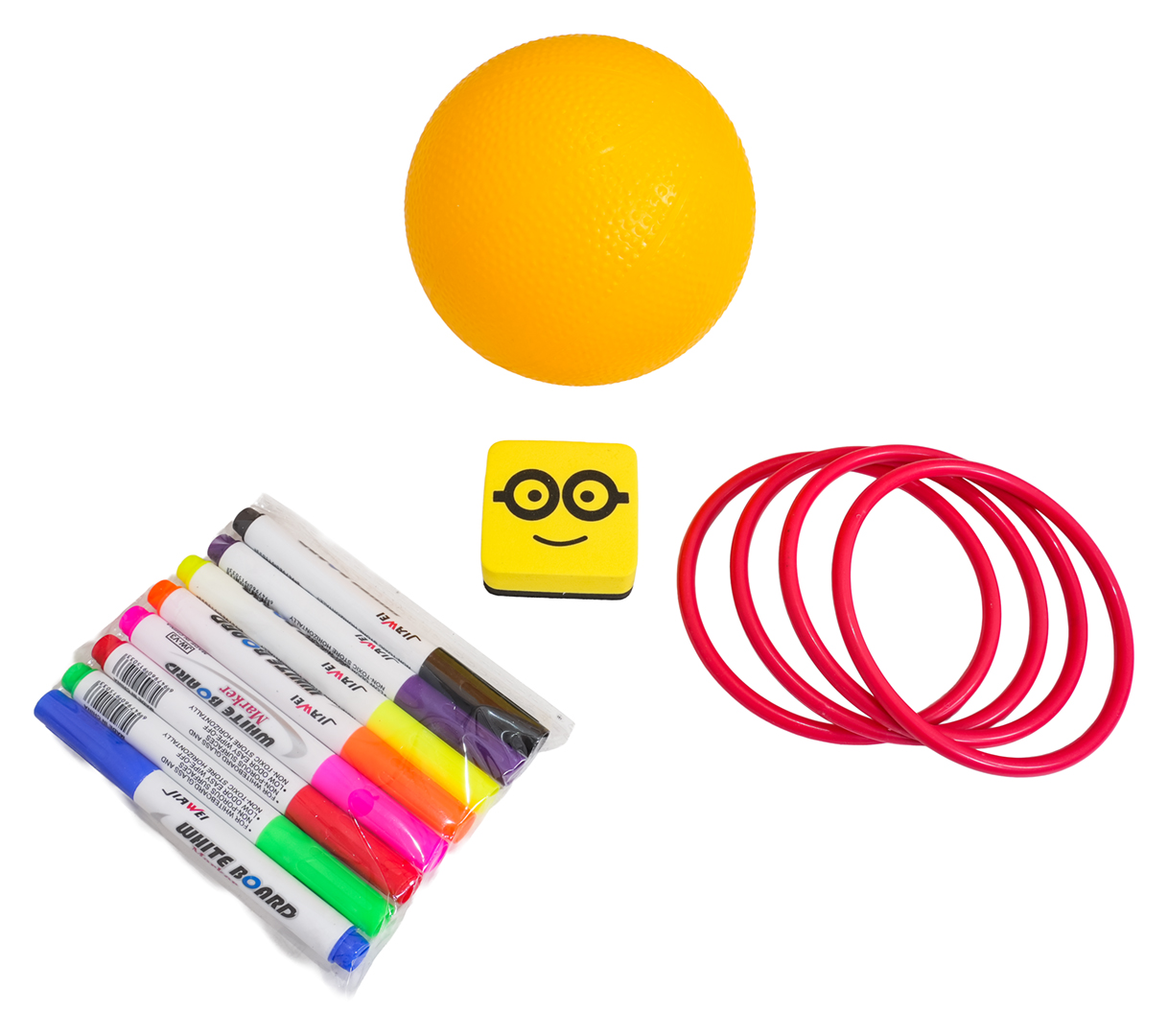 – set uključuje držač za igru s prstenovima za bacanje, četiri prstena i gumenu lopticu,