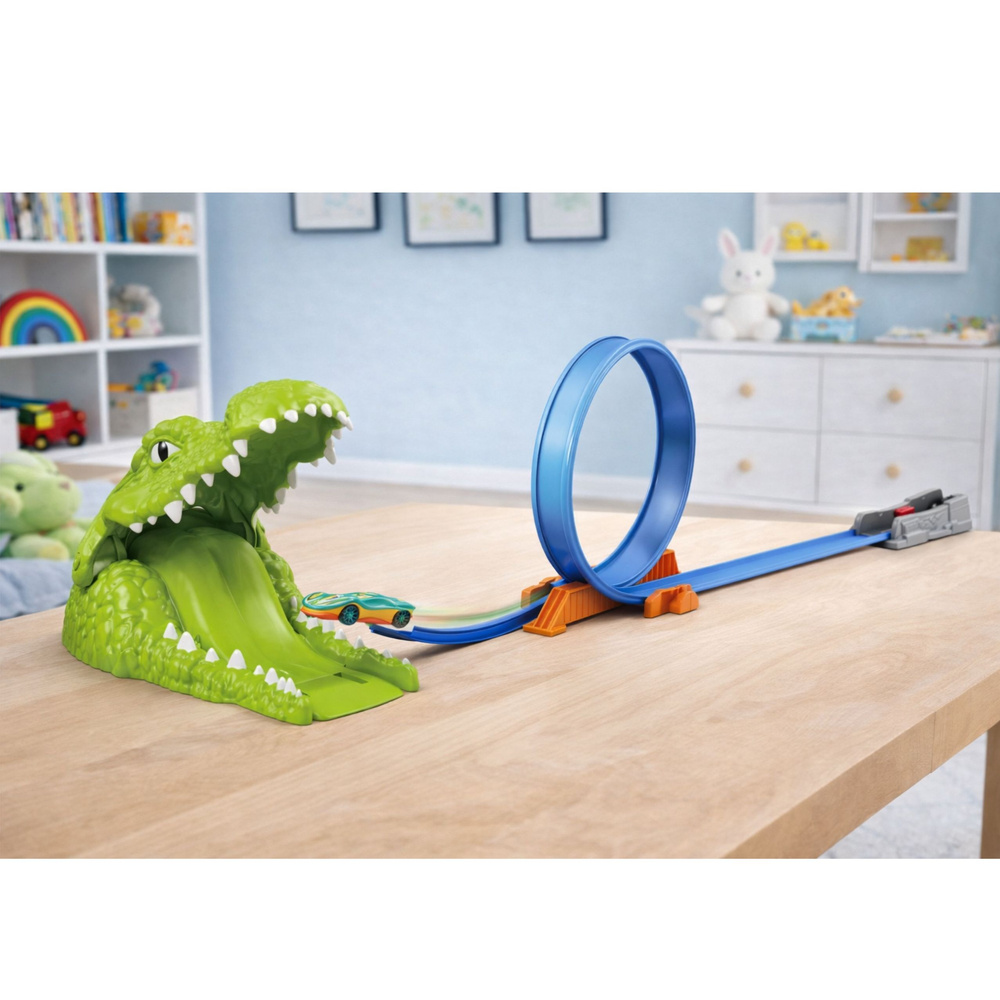 CAR TRACK WITH CATAPULT AND CROCODILE