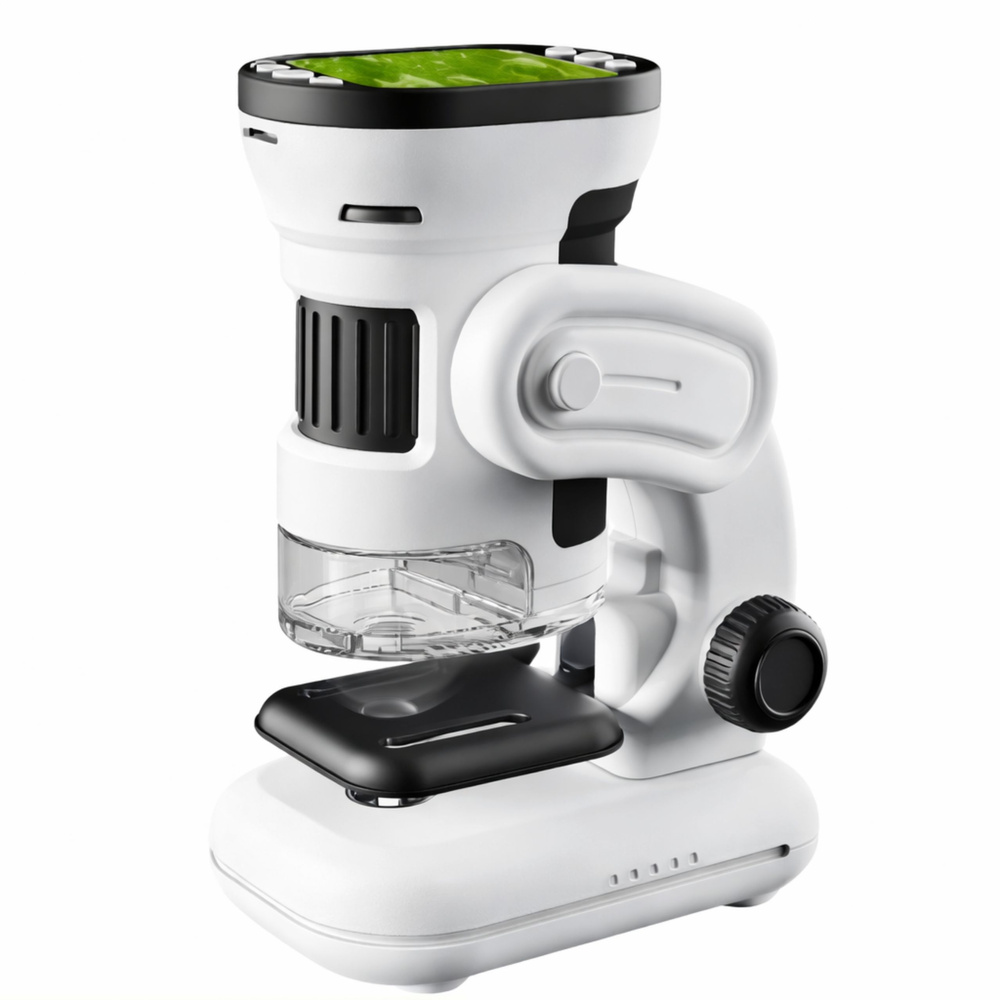 Mikroskop nudi tri načina korištenja: ručni, na tronošcu ili na stalku – što ga čini nevjerojatno svestranim. Njegova kompaktna veličina i mogućnost punjenja putem USB-a čine ga prijenosnim uređajem savršenim za kućnu i terensku upotrebu. Izvrstan je edukativni alat koji potiče znatiželju o svijetu, idealan za mlade istraživače.