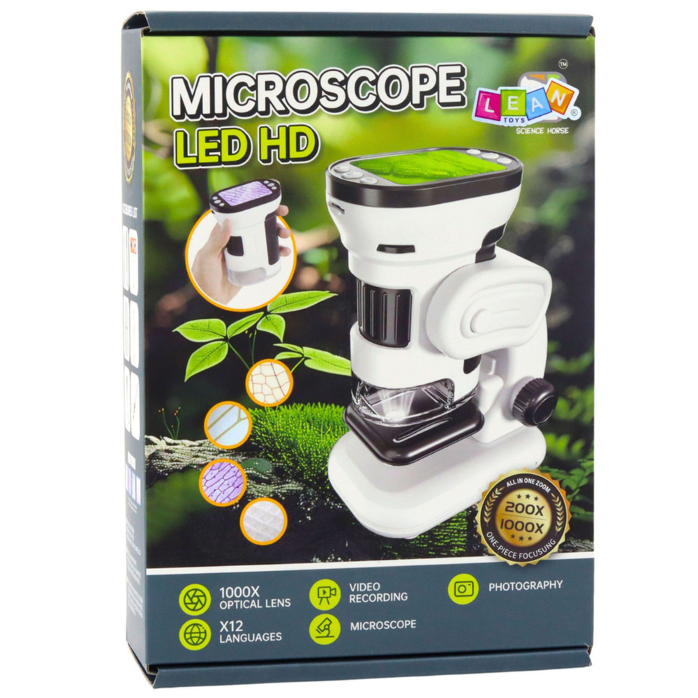 Ovaj digitalni edukativni mikroskop inovativan je uređaj koji omogućuje djeci i mladima da otkriju fascinantan svijet mikroorganizama. Opremljen visokokvalitetnim 2,0″ HD zaslonom, omogućuje praktično pregledavanje uzoraka i snimanje slika i videozapisa koji se spremaju na priloženu microSD karticu od 32 GB. Pet razina povećanja (200x – 1000x) omogućuje vam da vidite i najsitnije detalje.