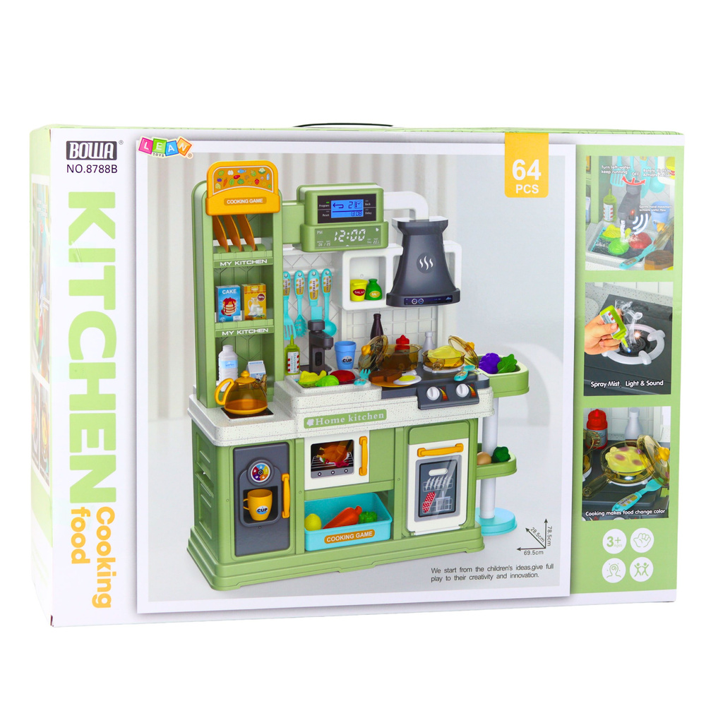 DJEČJA KUHINJA ZA IGRAČKE OD 64 DIJELA S FUNKCIJAMA VODE, PARE I MIJENJANJA BOJE HRANE