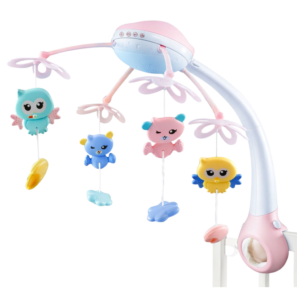 Ovaj interaktivni ružičasti mobil za dječji krevetić savršeno je rješenje za najmlađu djecu od prvih dana života. Kombinira funkcije glazbene kutije, projektora i edukativne igračke, podržavajući bebin razvoj i pomažući im da mirno zaspu.