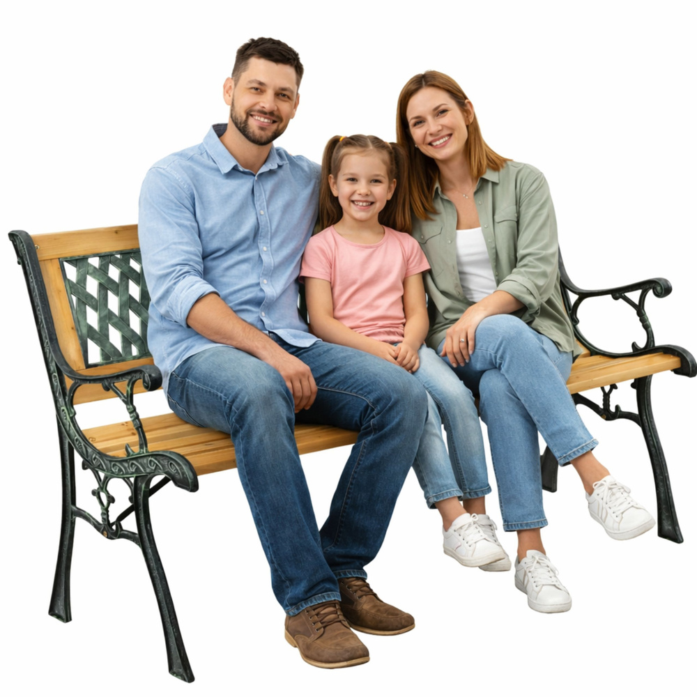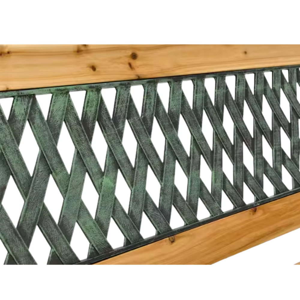 Vrtna klupa impresionira svojim jedinstvenim dizajnom koji skladno spaja toplinu drva s naglaskom metalnog, ukrašenog okvira . Nježni zeleni detalji okvira privlače pažnju i dodaju eleganciju klupi.