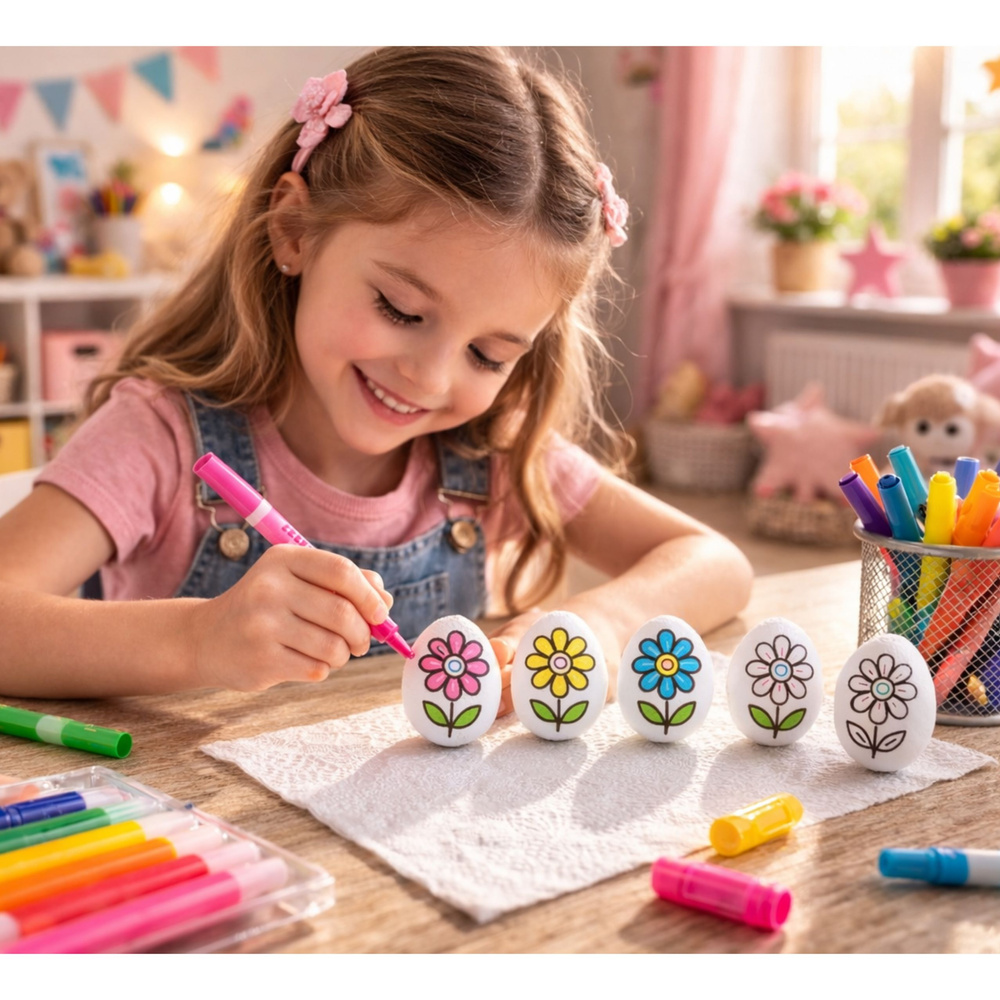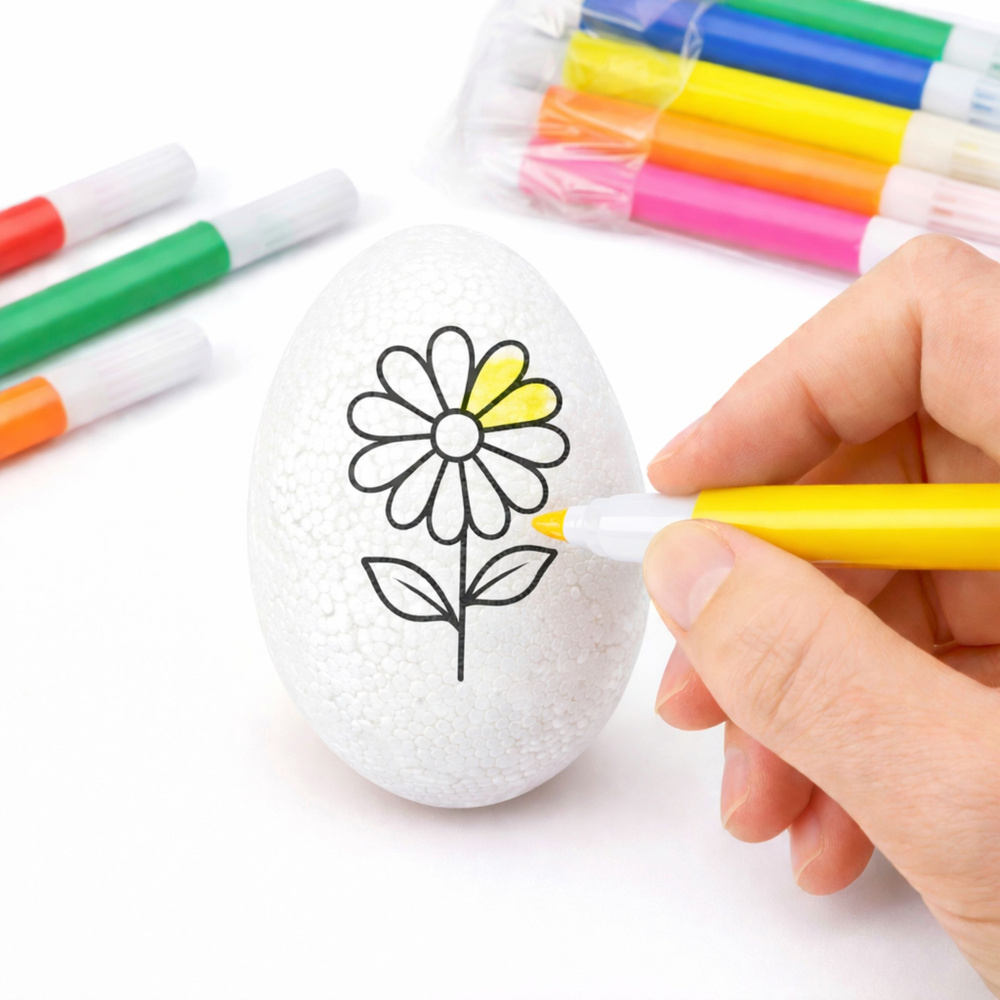 ⭐ STYROFOAM EGGS FOR PAINTING – 6 PIECES WITH MARKERS ⭐