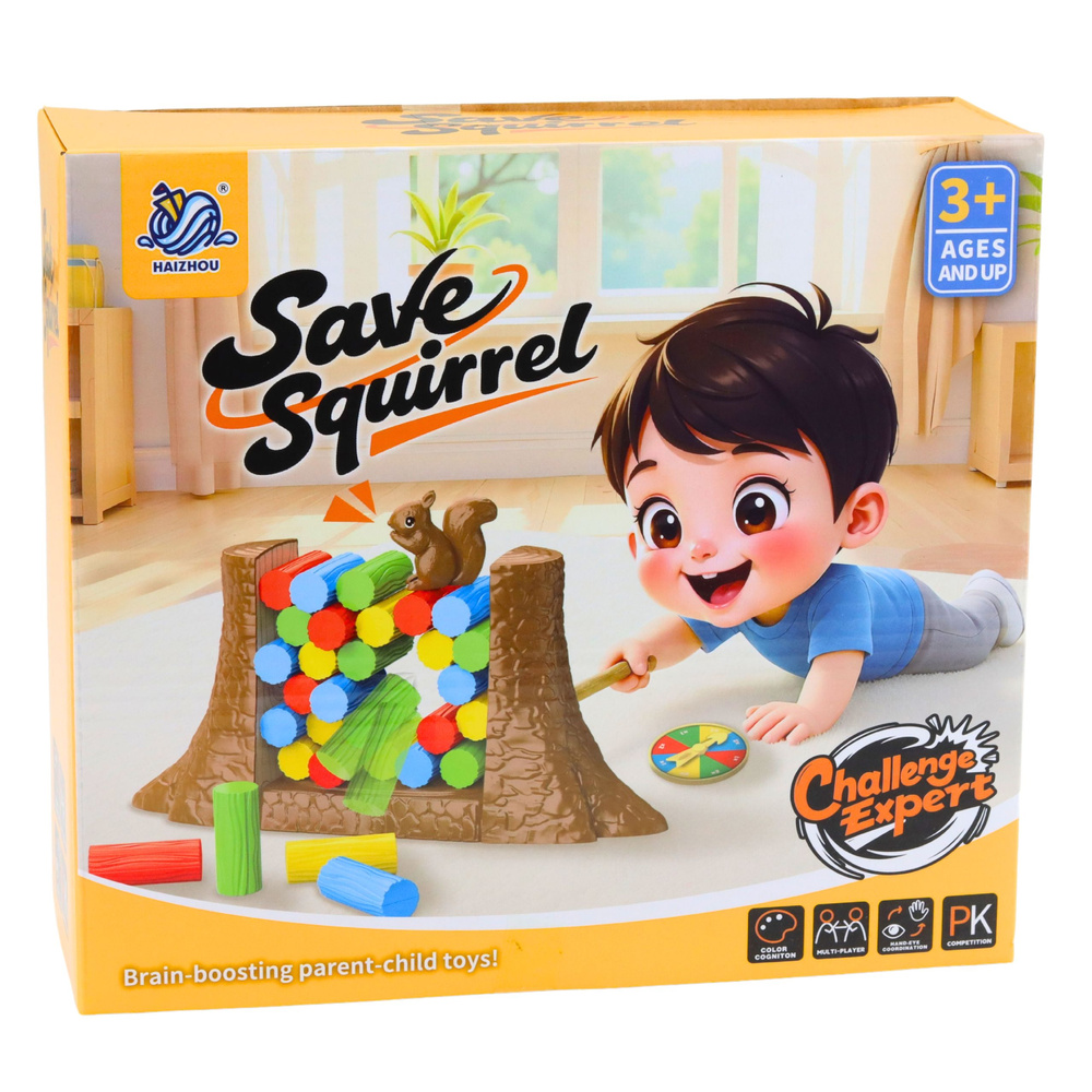 Igra spretnosti “Spasi vjevericu” zanimljiva je igra za djecu i cijelu obitelj koja razvija reflekse, logičko razmišljanje i motoričku koordinaciju. Igrači moraju pažljivo gurati obojene štapiće iz strukture bez da vjeverica na vrhu padne.