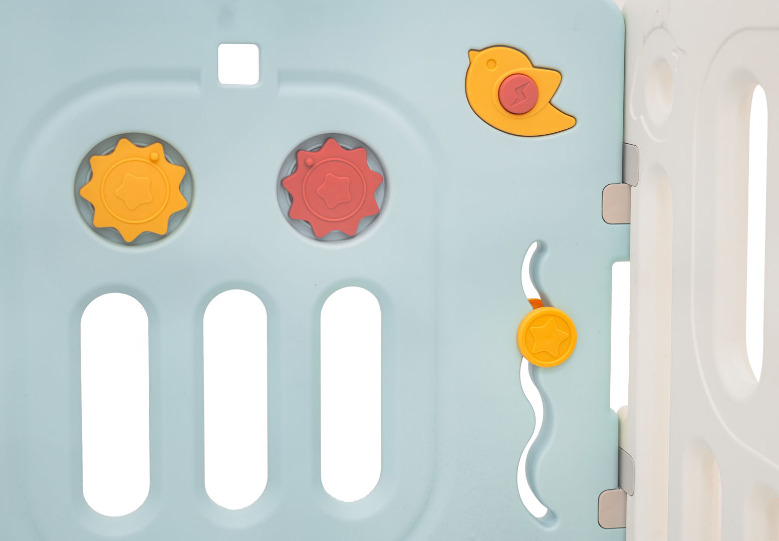 – manipulativni elementi unutar ograde: klizni kotači, zupčanici, zviždaljka u ptici i volanu, rotirajući volan.