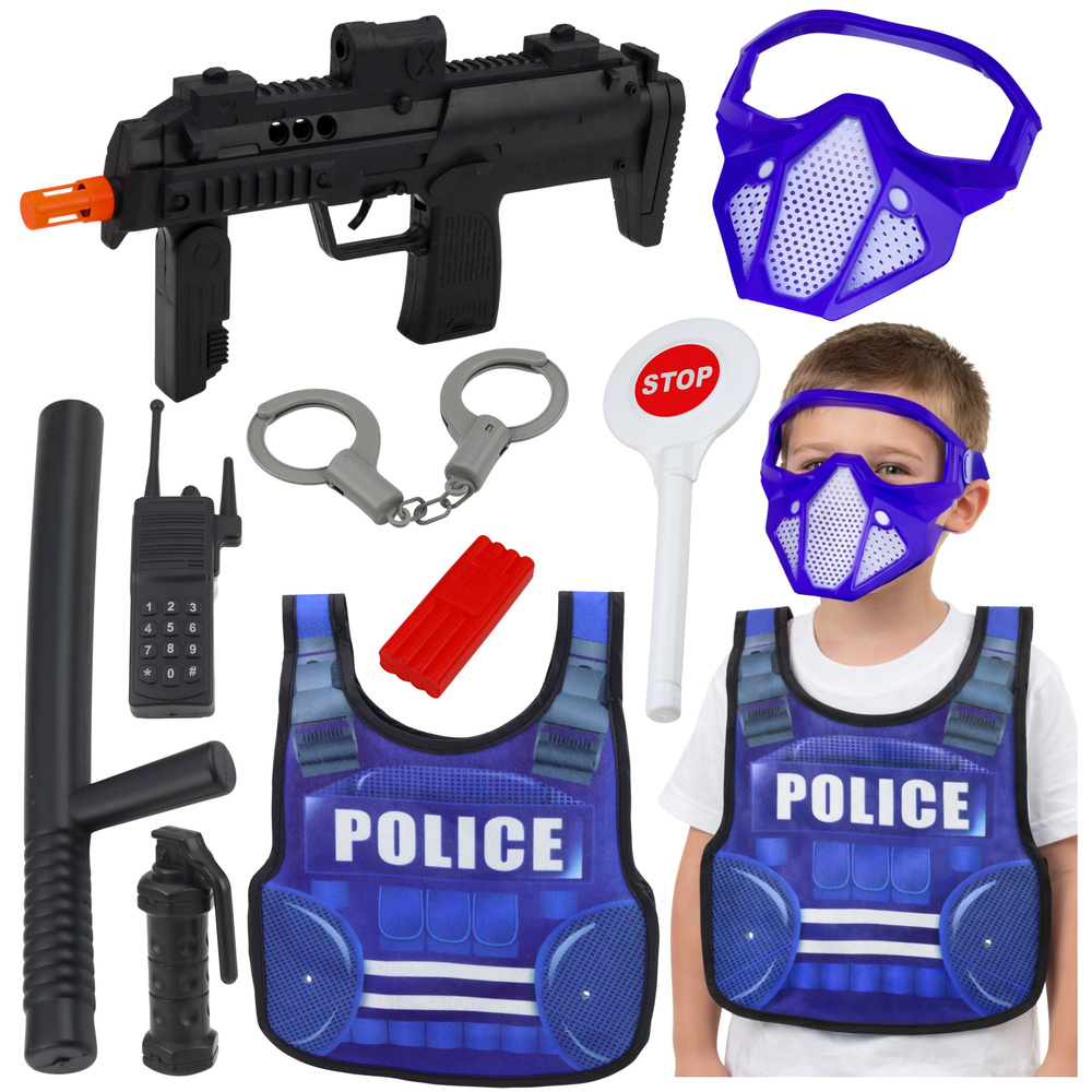 Set također uključuje razne policijske dodatke, kao što su igračka-pištolj, lisice, voki-toki, palica, znak STOP i zaštitne naočale. Ovi dodaci omogućuju djeci da glume realistične policijske patrole, kontrolne točke uz cestu i potjera.