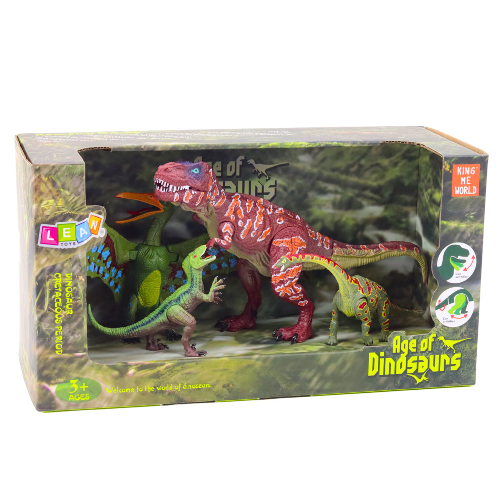 Set od četiri figure dinosaura idealan je prijedlog za sve mlade ljubitelje prapovijesti koji žele otputovati u doba kada su Zemljom hodali ogromni gmazovi. Set uključuje različite modele dinosaura – i mesojeda i biljojeda – svaki jedinstvenog izgleda, oblika i boje. Zahvaljujući takvoj raznolikosti, igra postaje ne samo zanimljivija, već i poučnija – dijete može na fascinantan način naučiti imena, karakteristike i ponašanja pojedinih vrsta.