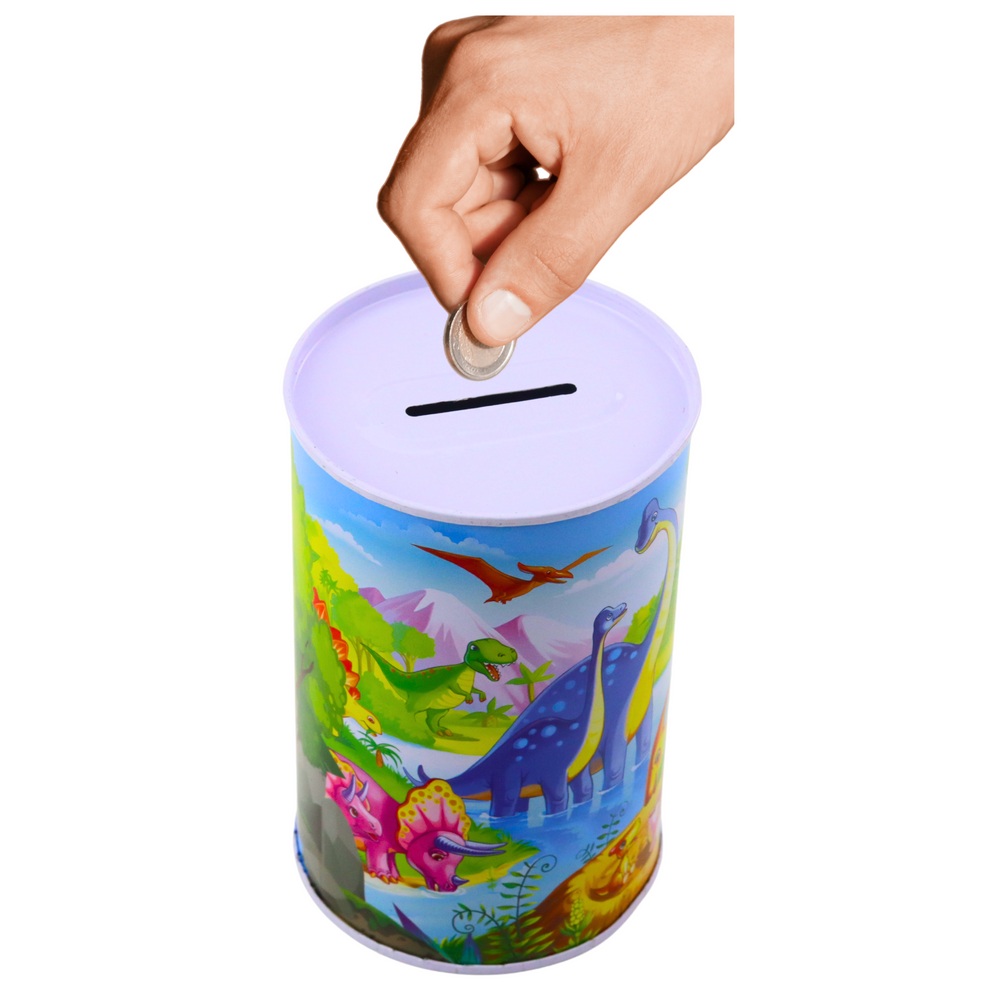 There is a practical opening at the top of the money box, which allows you to easily insert coins and, if necessary, also folded banknotes. The colorful pattern with dinosaurs attracts the attention of the youngest, making the money box not only a practical accessory, but also a charming decoration for a child’s room.