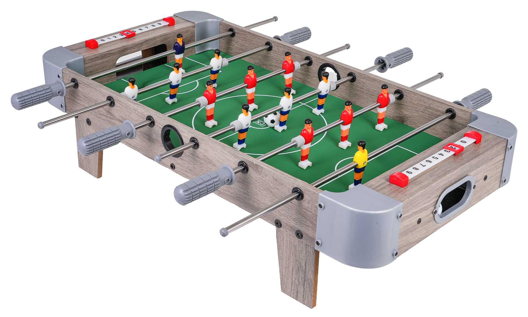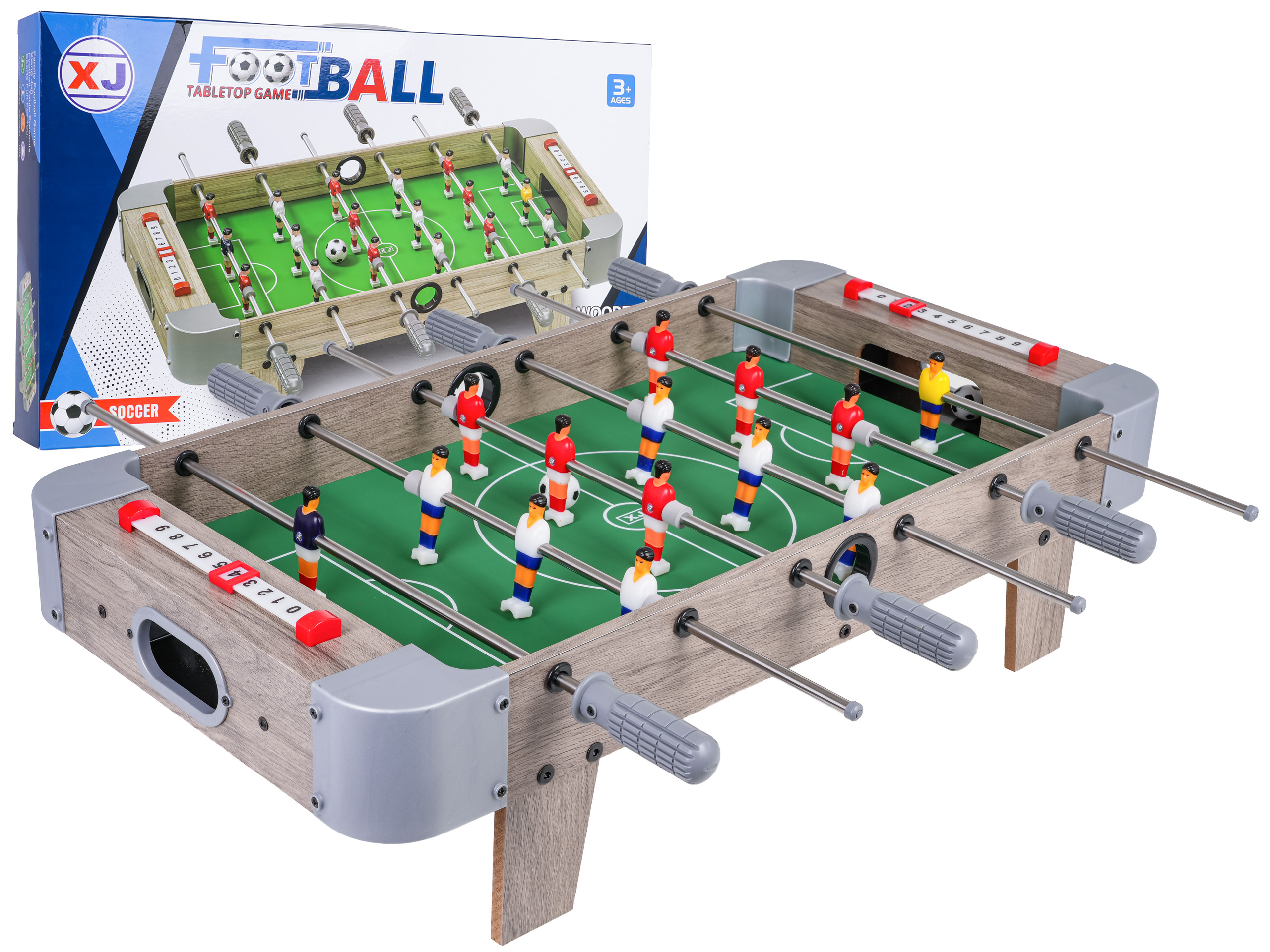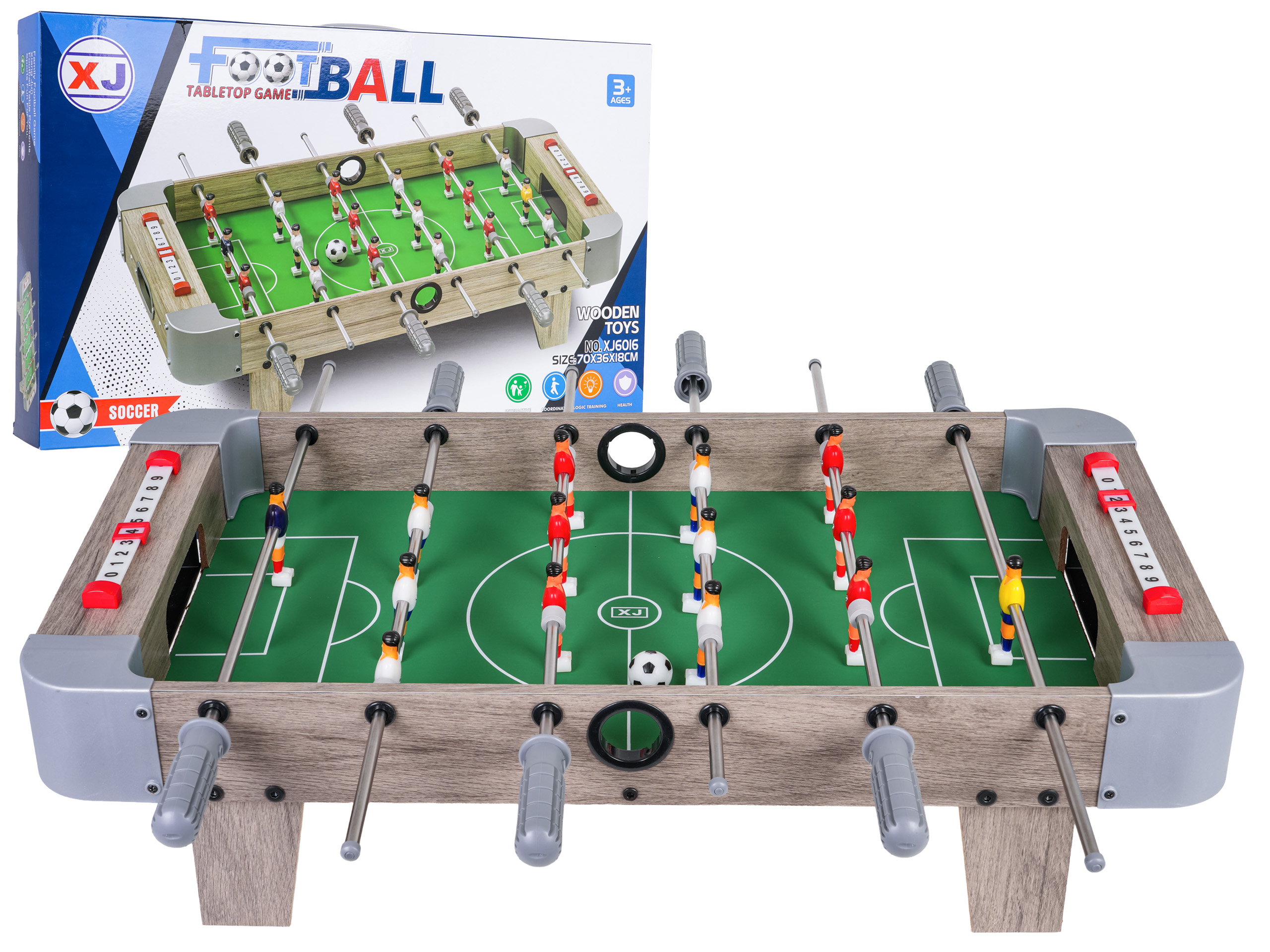 Stolni nogomet za djecu od tri godine i više. Izrađen od visokokvalitetnih materijala, ima laganu, stabilnu konstrukciju i brojač rezultata. Set se lako sastavlja, a njegova kompaktna veličina omogućuje vam da ga ponesete bilo gdje i uživate u uzbudljivim igrama gdje god idete.