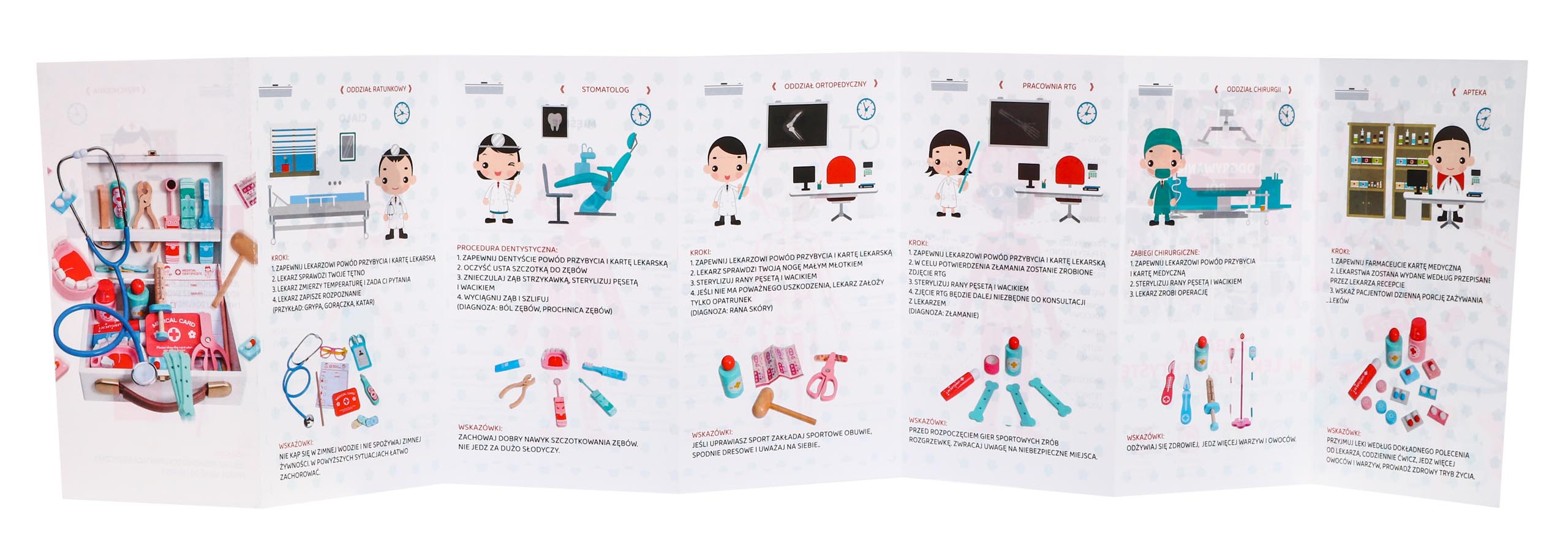 – knjižica na poljskom i engleskom jeziku koja uči djecu kako se ponašati s zadanim liječnicima zajedno s uputama