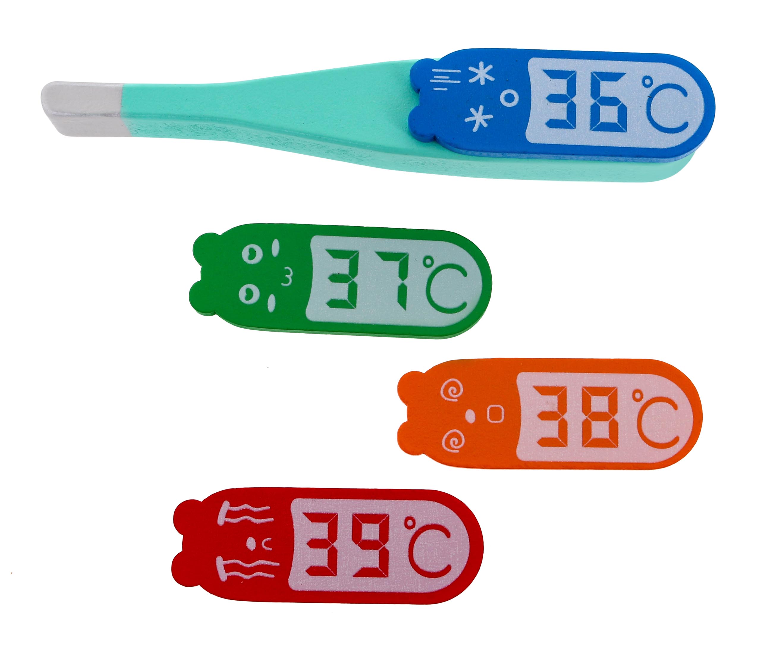 – drveni termometar s promjenjivim indikatorima temperature 12x3x1,5cm