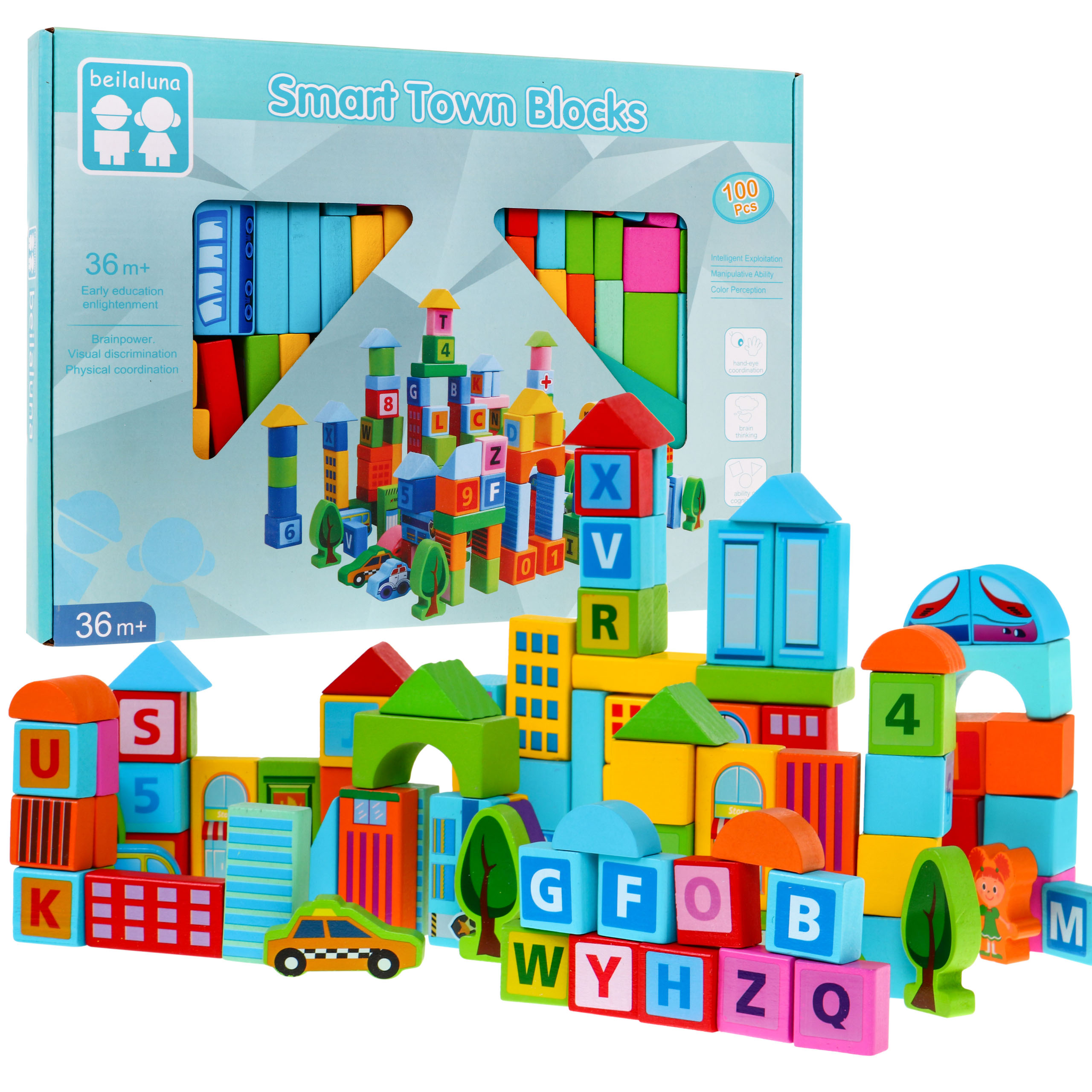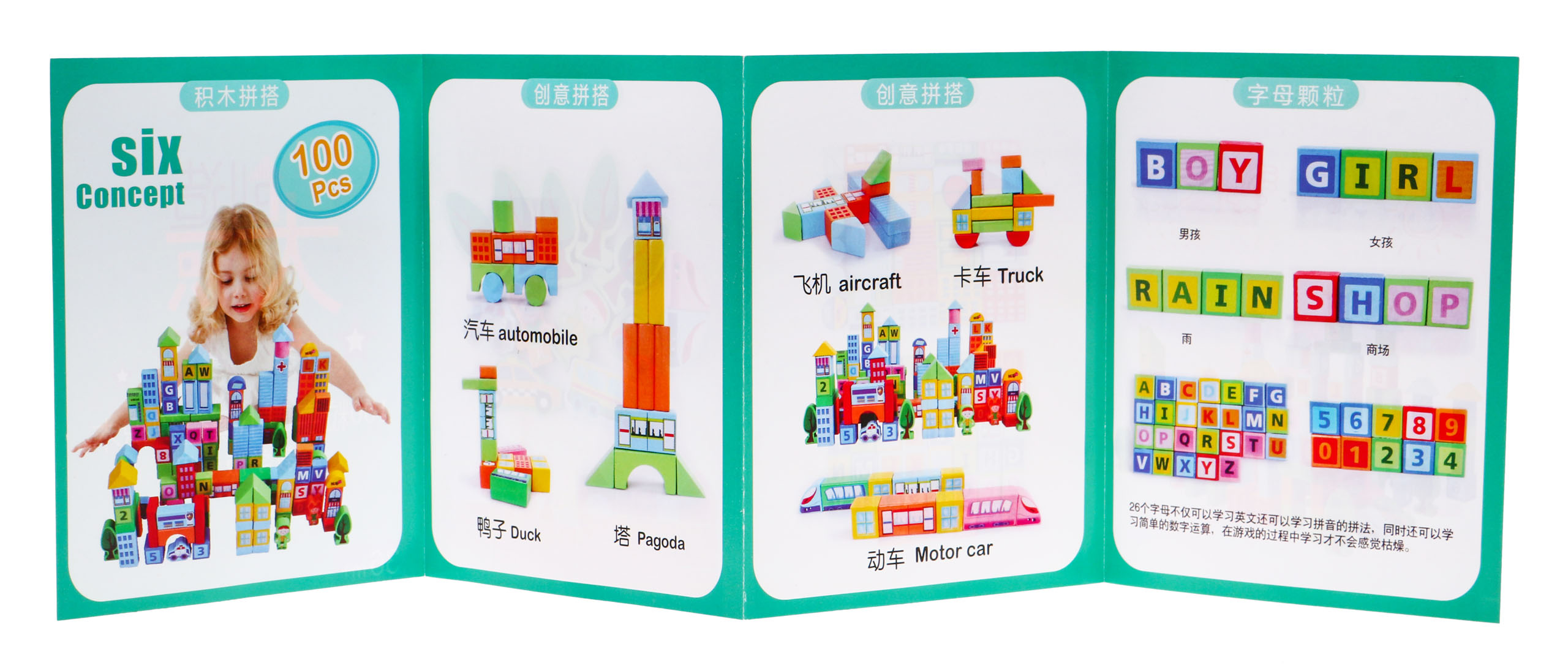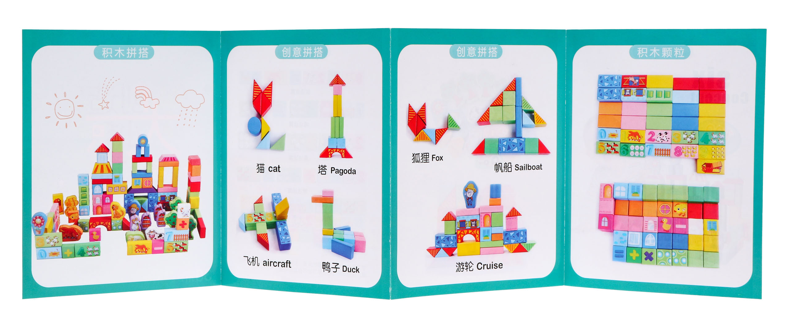 Set drvenih kocki 100 kom Set drvenih, izdržljivih kocki prijedlog je za djecu od 36 mjeseci starosti. Kockice su izraÄene od visokokvalitetnog drva, obojene sigurnom bojom, nemaju oÅ”tre rubove i glatke su. Oni Äe služiti vaÅ”em djetetu dugi niz godina. Kocke su razliÄitih oblika i boja, Å”to potiÄe dijete na gradnju kuÄa, tornjeva, vozila i sl. Uz set dolazi i slikovna uputa s primjerima modela koje treba složiti. VeÄina blokova ukraÅ”ena je slikama morskih životinja, slovima ili oblicima. Drvene kocke igraÄka su poznata i voljena generacijama. I djeÄaci i djevojÄice vole slagati kocke. Dijete kroz igru āātrenira svoju kreativnost, razvija prostornu maÅ”tu, spretnost, strpljenje, vježba koordinaciju oko-ruka. Oprema – 100 drvenih blokova raznih boja i oblika, – slikovno uputstvo. VeliÄina – blokovi cca. 3 cm x 3 cm x 3 cm, – blokovi cca. 3 cm x 3 cm x 1,5 cm, – blokovi cca. 6 cm x 3 cm x 3 cm, – blokovi cca. 6 cm x 3 cm x 1,5 cm – pakiranje cca. 38 cm x 26 cm x 3,5 cm. |